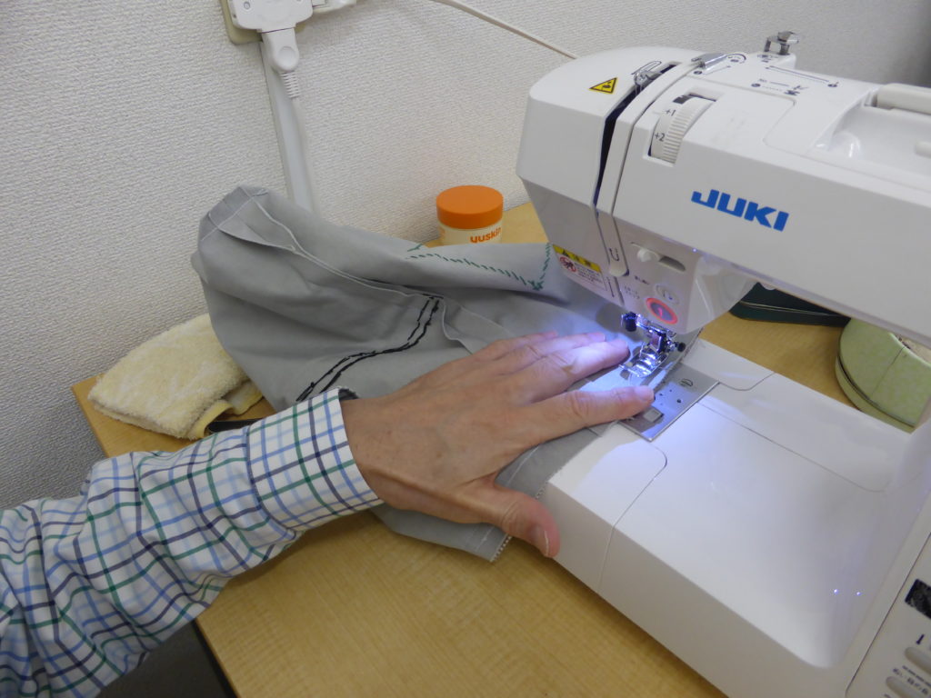 縫い初めに、糸の調子を見るのがいつもの手順。